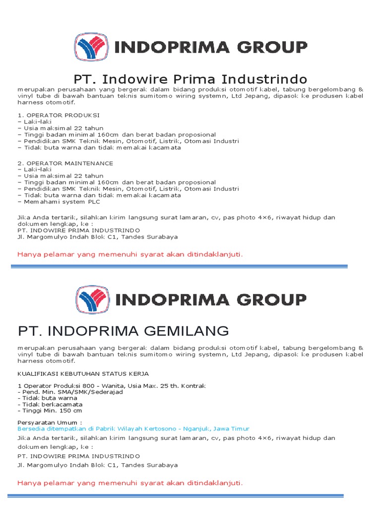 Syarat pelamar hwi / syarat melamar kerja di pt hwa seung indonesia / syarat melamar pekerjaan via email.